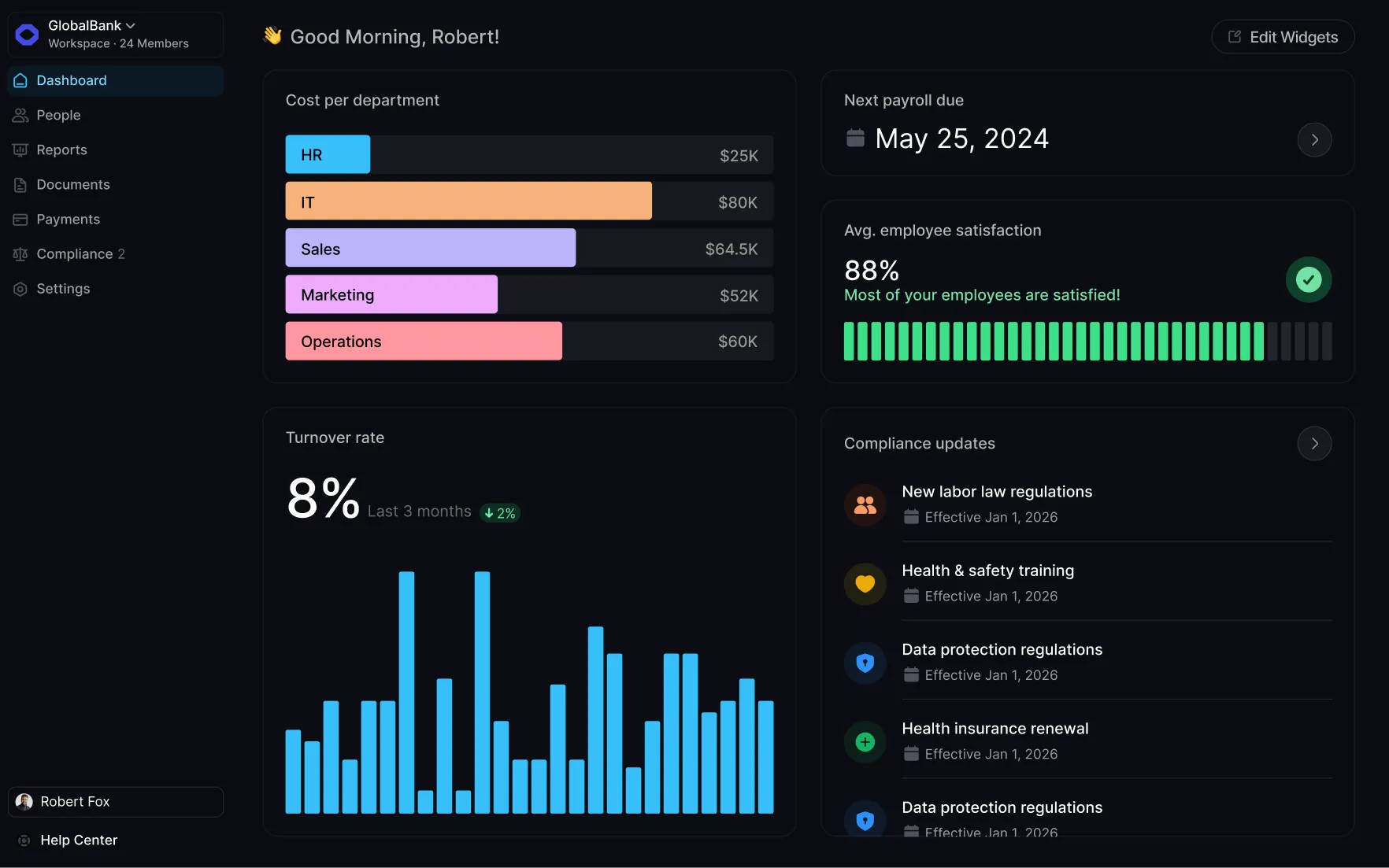 Gain actionable insights into your workforce with our real-time HR analytics.